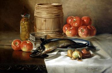 Keywords: EdwardChalmersLeavitt.jpg en Still Life with Fish oil on canvas Edward Chalmers Leavitt 1886 http //www federalreserve gov/generalinfo/virtualtour/photos cfm WhichSlide 2 WhichPhoto 10 Edward Chalmers Leavitt 1886 PD-Art Still life paintings of food Providence Rhode Island Artists from the United States Food and drink in art 1880s still-life paintings 1886 paintings |