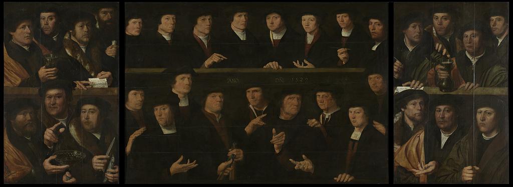 Keywords: Een groep schutters, 1529 Rijksmuseum SK-C-402.jpeg accession number SK-C-402 nl Een groep schutters van de Kloveniersdoelen Schuttersstuk bestaande uit drie delen een middenstuk uit 1529 met zeventien personen en twee zijstukken elk met zeven portretten die later zijn toegevoegd Alle figuren zijn in buste of ten halven lijve voorgesteld met een zwarte baret op het hoofd en meestal met gebarende handen Op het linker zijstuk een man met een lied op een stuk papier een man met een roemer en een schutter met een haring en een mes In het middenstuk houden twee schutters in hun hand de loop van hun geweer boven een man met een pen In het rechter stuk ook een schrijvende man met een pen naast de man met een tinnen kan drager Height cm 119 3 drager Width cm 174 4 drager Height cm 119 7 drager Width cm 75 9 drager Height cm 120 4 drager Width cm 76 1 geheel Gewicht kg 60 exhibition history 2009-2009 Old Masters Amsterdam Institution Rijksmuseum Technique oil panel object history Acquisition 1885-10-02 object type Potential derivatives exist check http //commons wikimedia org/w/index php search Rijksmuseum+SK-C-402 this search PD-US PD-old-100 Data and photography rights All data and all images made available through the API are either in the public domain or are subject to a CC0 license https //www rijksmuseum nl/en/api/terms-and-conditions-of-use cc-zero place of creation http //www rijksmuseum nl/collectie/SK-C-402 Een groep schutters 1529 Q17342587 Uploaded with GWToolset Een groep schutters 1529 Rijksmuseum SK-C-402 http //www rijksmuseum nl/media/assets/SK-C-402 Images uploaded by Fæ Images from the Rijksmuseum Dutch Renaissance paintings in the Rijksmuseum Amsterdam Male fur clothing in art Red fox clothing in art Dirck Jacobsz Paintings by Dirck Jacobsz with fur Fur fashion in 1529 Kloveniersdoelen Amsterdam |