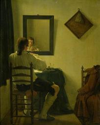 Keywords: Een schrijver die zijn pen versnijdt Rijksmuseum SK-A-690.jpeg accession number SK-A-690 nl In een interieur versnijdt een schrijver zijn pen Hij zit aan een tafel bij het venster boven de tafel een spiegel waarin het gezicht van de man te zien is Op tafel een inktstel rechts ligt een jas over de stoel ; Jan Ekels 1759-1793 olieverf op paneel 1784 Height cm 27 5 Width cm 23 5 exhibition history 2007-2007 Milkmaid by Vermeer and Dutch Genre Painting Tokyo 2005-2006 Meesters van de Romantiek Nederlandse kunstenaars 1800-1850 Rotterdam 2004-2008 Het Rijksmuseum aan de Grens - A Enschede Institution Rijksmuseum Technique oil panel object history Acquisition 1880 object type Potential derivatives exist check http //commons wikimedia org/w/index php search Rijksmuseum+SK-A-690 this search PD-US PD-old-100 Data and photography rights All data and all images made available through the API are either in the public domain or are subject to a CC0 license https //www rijksmuseum nl/en/api/terms-and-conditions-of-use cc-zero place of creation http //www rijksmuseum nl/collectie/SK-A-690 Een schrijver die zijn pen versnijdt Q17322164 Uploaded with GWToolset Een schrijver die zijn pen versnijdt Rijksmuseum SK-A-690 http //www rijksmuseum nl/media/assets/SK-A-690 Images uploaded by Fæ Images from the Rijksmuseum Paintings by Jan Ekels II in the Rijksmuseum Amsterdam Jan Ekels II |