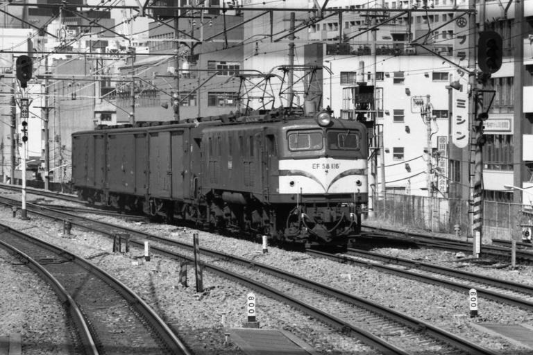 | Keywords: EF58 116 Ebisu 198501.jpg ja 荷物列車を牽引するEF58 116 恵比寿にて en JNR EF58 116 hauling cargo carriages 1985-01 own Hahifuheho cc-zero Uploaded with UploadWizard 1985 in rail transport in Japan Black and white photographs of Japan in the 1980s Black and white photographs of trains in Japan JNR EF58 |