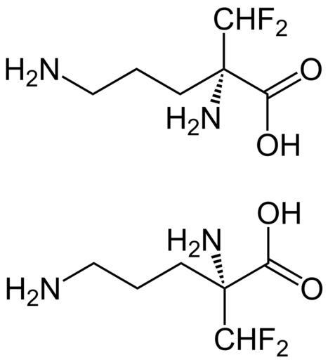 | Keywords: (±)-Eflornithin Structural Formulae V.1.svg en ± -Eflornithin_Structural_Formulae RS -Eflornithin_Structural_Formulae de ± -Eflornithin_Strukturformel RS -Eflornithin_Strukturformel own Jü 2010-11-30 Racemate Cc-zero Amino acids Antiprotozoal agents Organofluorides Orphan drugs Racemic mixture |
