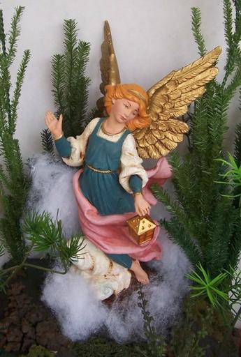 Keywords: Egan Nativity angel.jpg Angel appearing to shepherds for Nativity scene in Florida Figure is painted by crèche artist Bill Egan Own 2007-05 World Journalist Christmas traditions in art Christmas angels Nativity scenes of the United States
