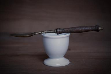 Keywords: egg cups white spoon old spoon silent still life close