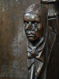 Keywords: Eglise Orbais-l'Abbaye 13 02 2011 stalles 09.jpg fr Stalles de l'église Saint-Pierre-et-Saint-Paul à Orbais l'Abbaye sculptées par Jean Huilier et offertes en 1520 par Louis de Bourbon abbé du couvent détail d'un accoudoir own Vassil 2011-02-13 Cc-zero Choir stalls of abbatiale Saint-Pierre d'Orbais-l'Abbaye Faces of men in art |