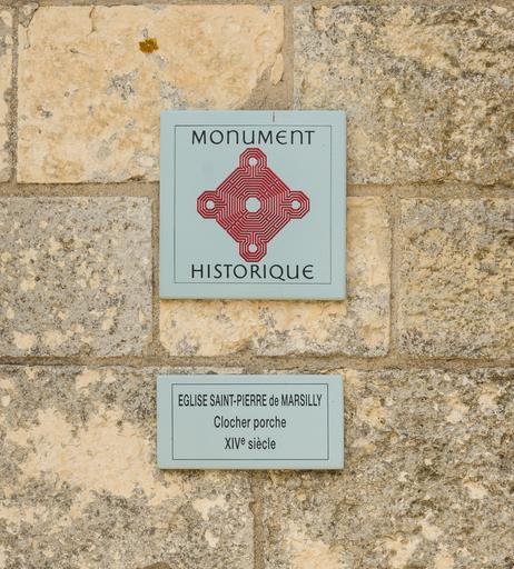 | Keywords: Eglise Saint-Pierre Marsilly panneau MH Charente-Maritime.jpg en The Monument Historique sign Church Saint-Pierre Marsilly Charente-Maritime France fr Les panneaux Monument Historique église Saint-Pierre Marsilly Charente-Maritime 2015-08-06 18 30 32 own Jebulon other versions PA00104793 fr cc-zero Uploaded with UploadWizard Église Saint-Pierre Marsilly Signs of Monument historique in France QualityImage | ||||