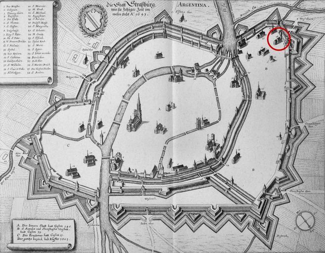 | Keywords: Eglise Sainte-Aurélie de Strasbourg-Merian-1643.jpg Localisation de l'église Sainte-Aurélie sur un plan de Strasbourg Merian 1643 Attention orientation sud-nord Commons 1643 Merian File Topographia Alsatiae Merian p 022 JPG p_021 p_023 Église Sainte-Aurélie Strasbourg 17th-century maps of Strasbourg Old maps of territories in the Upper Rhenish Circle Strasbourg | ||||