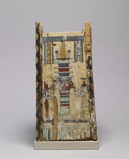 | Keywords: Egyptian - Box for Ushabtis or Canopic Jars - Walters 626 - Side C.jpg During the New Kingdom ushabti figures were often placed in a painted wooden box shaped like a shrine Only the sides of this box are preserved and it may have held a number of ushabti figures or a set of canopic jars The deities associated with death and the afterlife are represented on the box's panels There is the figure of a jackal on top of a shrine which represents the embalming god Anubis Isis and Nephthys flank the large symbol of Osiris and the four sons of Horus All of the inscriptions are related to the god Osiris ca 850 700 BC Third Intermediate wood with paint cm 41 27 20 accession number 62 6 2451 Dr J Beekmans Holland Robert T Clough Keighley Yorkshire Walters Art Museum 1965 by purchase Museum purchase with funds provided by the S A P Fund 1965 In Search of Ancient Treasure 40 Years of Collecting The Walters Art Gallery Baltimore 1978 place of origin Egypt Walters Art Museum license Ancient Egyptian art in the Walters Art Museum Works of the Egyptian third intermediate period Ushabti box Isis and Nephthys Djed |
