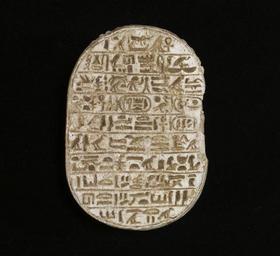 Keywords: Egyptian - Commemorative Scarab of Amenhotep III - Walters 42206 - Bottom.jpg ca 1380 BC New Kingdom steatite glaze cm 3 81 5 6 8 5 accession number 42 206 6200 Dikran Kelekian Paris and New York date and mode of acquisition unknown Henry Walters city Baltimore Walters Art Museum Henry Walters Acquired by Henry Walters 1914 Translation Living Horus Strong bull appearing in truth; / He of the Two Goddesses Establishing laws pacifying the / Two Lands; Golden Horus Great of power smiting the Asiatics; King of Upper and Lower Egypt / Neb-Maat-Re; Son of Re Amen-hetep Ruler of Thebes who may receive life The great royal consort / Tiye may she live The name of her father is Yuya / the name of her mother is Tjuia / She is the wife of the militarily powerful king; / the both boundaries of his empire are the southern Kary / and the northern Nah- / arina place of origin Greece Walters Art Museum license Ancient Egyptian scarabs in the Walters Art Museum Scarabs of Amenhotep III Tiye Media contributed by the Walters Art Museum needs category review |