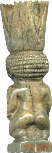 | Keywords: Egyptian - Female Dwarf - Walters 71507 - Back.jpg This carefully carved plump female figure has dwarfed limbs a large head with short curly hair and large breasts A deep hole marks the navel The wide pubic triangle is marked by holes There is a depression on top of the buttocks On the head is a large lotus blossom A ball surrounded by ridges has been inserted into the hollow lotus to form the calyx of the flower mid 4th millennium BC Predynastic Egypt bone cm 6 14 1 44 1 35 accession number 71 507 2280 Dikran Kelekian New York and Paris date and mode of acquisition unknown obtained in Lower Egypt William T / Henry Walters Collection Baltimore date of acquisition unknown by purchase Walters Art Museum Henry Walters Acquired by William T or Henry Walters place of origin Egypt Walters Art Museum license Egyptian predynastic art in the Walters Art Museum Beset Ancient Egyptian lotus |