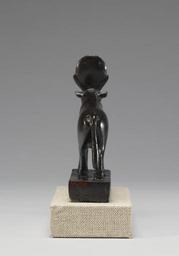 Keywords: Egyptian - Figure of the Apis Bull - Walters 54538 - Back.jpg The Apis bull was associated with the creator god Ptah and with the rituals for the king His main place of worship was Memphis After the death of the Apis bull he was mummified and buried in a special cemetery Figures of Apis bulls were donated during the Late and Greco-Roman periods into temples This bronze figure displays the bull on a base He has a sun-disk between his horns combined with a uraeus cobra serpent The carving on its body displays a collar a winged sun-disk on the shoulders and a cloth with a hatched pattern on the back ca 600 500 BC Late Period bronze cm 12 07 11 43 accession number 54 538 22399 Henry Walters Baltimore date and mode of acquisition unknown Walters Art Museum Henry Walters Acquired by Henry Walters Translation The Apis the Horus giving life to Pesometik son of Pedy-wesr made of Neb-hetef Egypt in Africa Indianapolis Museum of Art Indianapolis 1996 place of origin Egypt Walters Art Museum license Ancient Egyptian statuettes in the Walters Art Museum Statues of Apis Media contributed by the Walters Art Museum needs category review |