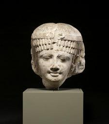 | Keywords: Egyptian - Head of a Queen, Perhaps Cleopatra II or Cleopatra III - Walters 22407 (2).jpg  Shown wearing a heavy wig composed of tiers of corkscrew curls the queen also has a headband with a coiled uraeus serpent above her brow Of the seven Ptolemaic queens named Cleopatra the last being the Cleopatra associated with Julius Caesar and Marc Antony this head may represent Cleopatra II or her daughter Cleopatra III both of whom lived in the 2nd century BC The facial features are more individualized reflecting the Greek influence of the Ptolemaic royal court ca 140 120 BC Greco-Roman limestone cm 24 7 17 8 22 5 accession number 22 407 24043 Dikran Kelekian New York and Paris date and mode of acquisition unknown Henry Walters city Baltimore Walters Art Museum Henry Walters Acquired by Henry Walters 1928 From Alexander to Cleopatra Greek Art of the Hellenistic Age The Walters Art Gallery Baltimore 1988-1989 place of origin Egypt <gallery> File Egyptian - Head of a Queen Perhaps Cleopatra II or Cleopatra III - Walters 22407 jpg </gallery> Walters Art Museum license Ancient Egyptian statues in the Walters Art Museum Statues of the Ptolemaic dynasty Ancient Greek busts in the United States Ancient Greek busts of women Braids in art BC Egypt |