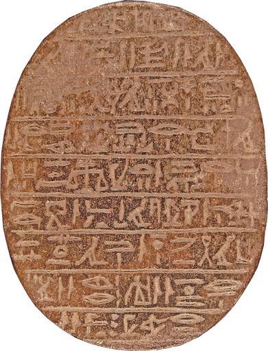 | Keywords: Egyptian - Heart Scarab of Hati-iay - Walters 4230 - Bottom.jpg During the process of mummification amulets of different kinds were placed on the body or wrapped in the mummy bindings to protect the deceased from the dangers of the underworld At the center of these arrangements of amulets was usually a Heart Scarab which contained a special spell related to the Court of the Dead a pectoral with a scarab centerpiece or a winged scarab made of Egyptian faience a glazed ceramic-like material On its right wing the scarab displays the Benu-bird in a sacred boat And on its left wing is the squatting figure of the god Osiris The bottom inscription has the name and title of the owner and spell 30B of the Book of the Dead ca 1550 1186 BC New Kingdom quartzite and traces of gold leaf cm 2 4 5 2 6 8 accession number 42 30 19093 Henry Walters Baltimore 1924 mode of acquisition unknown Walters Art Museum Henry Walters Acquired by Henry Walters 1924 Translation Osiris the military scribe Hati- / iay the justified he says Heart that I received from mother / heart that I received from mother heart of different ages Do not stand up against me as a witness; / do not contradict me in the court; do not be hostile / to me in the presence of the Keeper of the Balance You are my Ka life-force / which is in my body the creator who makes whole my limbs Go to / the place which is prepared for me there Do not make / my name stink to the councilors judges who make / people mortals to renewed beginners Daily Magic in Ancient Egypt The Walters Art Museum Baltimore 2006-2007 place of origin Egypt Walters Art Museum license Ancient Egyptian scarabs in the Walters Art Museum Heart scarabs Hieroglyphs on scarabs Osiris hieroglyphs Scribe equipment hieroglyph Archer hieroglyph Forepart of lion hieroglyph Noble with flail hieroglyph True of Voice hieroglyphs Threshing floor hieroglyph Mast hieroglyph Spindle hieroglyph Fire drill hieroglyph Irrigation canal hieroglyph Balance hieroglyph Basket with handle k hieroglyph Crossed planks hieroglyph Jug with handle hieroglyph Hoe hn hieroglyph Tilapia hieroglyph Shen ring hieroglyph Man with staff hieroglyph |