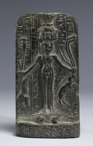 | Keywords: Egyptian - Horus-Stele - Walters 22332.jpg The Horus-stele or 'cippus ' was one of the most important items associated with magic in ancient Egypt At the center of these stone slabs was the nude figure of the child Horus or Harpocrates associated with the newborn sun with the head of the god Bes above him Horus-the-Child the son of Isis stands on two crocodiles and holds dangerous animals snakes scorpion lion and antelopes in his hands demonstrating that with supernatural powers even a child can overcome dangers Texts and magical scenes occupy most of the empty space Larger examples of these Horus-steles were placed in temple precincts where priests poured water over them to absorb the magical power of the spells and images Drinking the water it was believed would protect against the harmful bites of dangerous creatures as well as other dangers and evils Smaller versions were used at home and very small ones were worn as amulets century 3 BC Greco-Roman dark grey serpentine cm 16 5 accession number 22 332 24712 Dikran Kelekian New York and Paris by purchase Henry Walters city Baltimore Walters Art Museum Henry Walters Acquired by Henry Walters 1923 Thou Shalt Have No Other Gods Before Me The Jewish Museum New York 1964 Daily Magic in Ancient Egypt The Walters Art Museum Baltimore 2006-2007 place of origin Egypt Walters Art Museum license Ancient Egyptian reliefs in the Walters Art Museum Cippus of Horus Amulets of Greco-Roman Egypt |
