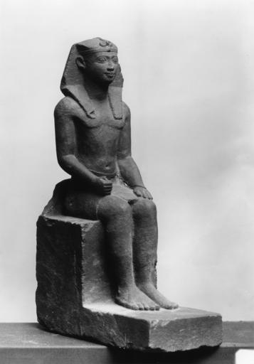 | Keywords: Egyptian - King - Walters 22406 - Three Quarter.jpg This sculpture of a king wears a uraeus and a wig He is seated on a chair with a low back His right hand is clenched on his knee and his left is flat on his knee He wears a short skirt The piece is broken at the waist and has been formerly repaired This piece is probably a forgery made by an Italian date red sandstone cm 40 5 accession number 22 406 30127 Dikran Kelekian New York and Paris date and mode of acquisition unknown Henry Walters city Baltimore Walters Art Museum Henry Walters Acquired by Henry Walters 1912 Artful Deception The Craft of the Forger The Walters Art Gallery Baltimore; Edsel Eleanor Ford House Grosse Pointe Shores; Dallas Museum of Art Dallas; Oklahoma City Museum of Art Oklahoma City; Portland Museum of Art Portland; The Fine Arts Center at Cheekwood Nashville; Phoenix Art Museum Phoenix; Columbia Museum of Art Columbia; Elvehjem Museum of Art Madison; Crocker Art Museum Sacramento; Memorial Art Gallery of the University of Rochester Rochester; The Barnum Museum Bridgeport 1987-1992 place of origin Egypt Walters Art Museum license Ancient Egyptian statues in the Walters Art Museum Unknown pharaohs Media contributed by the Walters Art Museum needs category review |