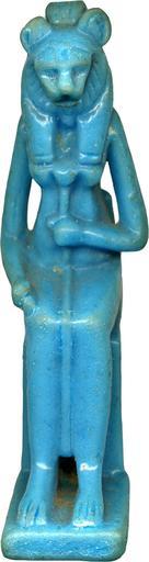 | Keywords: Egyptian - Lioness Headed Goddess - Walters 481546.jpg The lustrous blue glaze on this example of Egyptian faience a ceramic-like glazed material imitated the tones of turquoise which was imported from the Sinai Peninsula Egyptian faience was inexpensive to produce but the results were so beautiful that it was used for even very prestigious objects The lioness-headed goddess probably Wadjet is seated on a throne her left hand holding a papyrus-scepter in front of her body A loop which clarifies the function of the small statuette as a pendant is behind her back between 664 525 BC Late Period; Saite Egyptian faience with blue glaze cm 5 29 1 42 3 19 accession number 48 1546 11753 Henry Walters Baltimore 1930 mode of acquisition unknown Walters Art Museum Henry Walters Acquired by Henry Walters 1930 place of origin Egypt Walters Art Museum license Ancient Egyptian amulets in the Walters Art Museum Ancient Egyptian faience in the Walters Art Museum Media contributed by the Walters Art Museum needs category review |