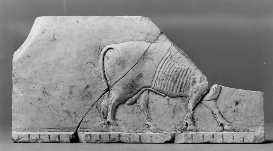 Keywords: Egyptian - Model with a Lion and a Bull - Walters 2241 - Back.jpg This limestone model is carved in low relief and depicts a lion on the front and a bull on the back The figures stand on a base on each side The piece is painted with vertical lines between 664 525 BC Late Period limestone H 4 1/8 x L 8 3/8 in 10 5 x 21 3 cm accession number 22 41 32779 Dikran Kelekian New York and Paris date and mode of acquisition unknown Henry Walters city Baltimore Walters Art Museum Henry Walters Acquired by Henry Walters 1911 place of origin Abydos in present-day Egypt Walters Art Museum license Ancient Egyptian reliefs in the Walters Art Museum Media contributed by the Walters Art Museum needs category review Ancient Egyptian art from Abydos |