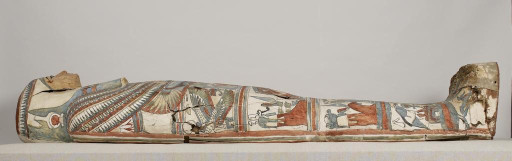 Keywords: Egyptian - Mummy and Painted Cartonnage of an Unknown Woman - Walters 791 - Right Side.jpg Mummification preserved mortal remains in order to house the Ka or life force of the individual as it needed to return to the body to find sustenance The human-shaped covering called cartonnage is composed of layers of linen and plaster Its painted decoration includes the floral wreath on the wig a broad collar and a winged scarab beetle Five additional registers of decoration show the protective four sons of Horus the sacred boat of the funerary-deity Sokar a mummy of Osiris on a funerary bed a divine falcon god and a short hieroglyphic text with an offering formula See the additional media for a facial reconstruction of the mummy courtesy of Michael Brassell as well as a color reconstruction of the cartonnage ca 850 750 BC Third Intermediate mummy in cartonnage with paint cm 167 46 27 5 accession number 79 1 492 Excavated at Deir el-Bahri by the Metropolitan Museum of Art's Egyptian Expedition Winter of 1930-1931 by Ambrose Lansing Metropolitan Museum of Art New York ca 1930-1931 Walters Art Museum 1941 by exchange Museum acquisition by exchange with the Metropolitan Museum of Art 1941 Translation The king gives an offering to Osiris In Search of Ancient Treasure 40 Years of Collecting The Walters Art Gallery Baltimore 1978 Highlights from the Collection The Walters Art Gallery Baltimore 1998-2001 place of origin Deir el-Bahri present-day Western Thebes Egypt Walters Art Museum license Ancient Egyptian sarcophagi in the Walters Art Museum Ancient Egyptian art from Deir el-Bahari Sarcophagi of the Egyptian third intermediate period Media contributed by the Walters Art Museum needs category review Egyptian mummies in the Walters Art Museum |