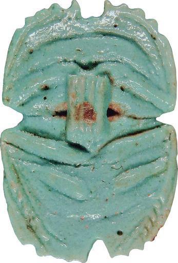Keywords: Egyptian - Naturalistic Scarab - Walters 42370 - Bottom.jpg Naturalistic scarabs which exhibit a beetle-formed underside instead of a flat bottom with additional motifs became popular in the late Third Intermediate and Late periods They were attached to the mummy bandages and were part of the amulet set There are two varieties of such scarabs red carnelian and blue-green faience scarabs It is likely that the blue-green scarabs focus only on the renewal aspect while the red carnelian scarabs were related to the sun rise/set aspect and gave special protection at the critical transition phase between 664 525 BC Late Period Egyptian faience with blue-green glaze cm 1 1 1 9 2 8 accession number 42 370 4005 Henry Walters Baltimore 1924 mode of acquisition unknown Walters Art Museum Henry Walters Acquired by Henry Walters 1924 Faience The Colors of the Heavens The Walters Art Museum Baltimore; The Walters Art Museum Baltimore 2003-2004 place of origin Egypt Walters Art Museum license Ancient Egyptian scarabs in the Walters Art Museum Media contributed by the Walters Art Museum needs category review |