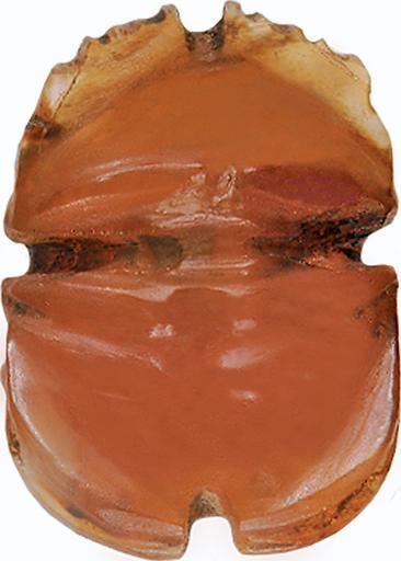 Keywords: Egyptian - Naturalistic Scarab - Walters 42228 - Bottom.jpg Naturalistic scarabs which exhibit a beetle-formed underside instead of a flat bottom with additional motifs became popular in the late Third Intermediate and Late periods They were attached to the mummy bandages and were part of the amulet set There are two varieties of such scarabs red carnelian and blue-green faience scarabs It is likely that the blue-green scarabs focus only on the renewal aspect while the red carnelian scarabs were related to the sun rise/set aspect and gave special protection at the critical transition phase ca 664 525 BC Late Period dark orange-red carnelian cm 0 9 1 5 2 1 accession number 42 228 35499 Henry Walters Baltimore 1929 mode of acquisition unknown Walters Art Museum Henry Walters Acquired by Henry Walters 1929 Daily Magic in Ancient Egypt The Walters Art Museum Baltimore 2006-2007 place of origin Egypt Walters Art Museum license Ancient Egyptian scarabs in the Walters Art Museum Media contributed by the Walters Art Museum needs category review