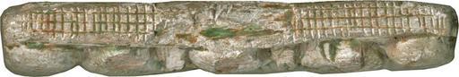 | Keywords: Egyptian - Pectoral with Sacred Symbol and Representation of Atum and Re-Harakhte on the Other Side - Walters 4284 - Top.jpg  The rectangular pectoral which has two holes for suspension On one side of the pectoral is the solar boat depicted Inside of the boat is the winged scarab as well as the moon disk and crescent combination both are flanked by two standing baboons with adoration gestures On the other side of the plaque there are three image fields On the far left is the god Atum in the center is the solar falcon and on the far right is the god Re-Harakhte Atum is named by the inscription as the Lord of the Sky and the solar falcon as Re-Harakhte Great God and Living Lord of Heliopolis and the falcon-headed god just as Re-Harakhte The sides of the pectoral are decorated with a grid pattern The pectoral was probably produced during the Ramesside Period or the early Third Intermediate Period between 1292 945 BC New Kingdom-early Third Intermediate steatite with remains of green glaze cm 3 71 5 39 0 55 accession number 42 84 28352 Dikran Kelekian New York and Paris date and mode of acquisition unknown Henry Walters city Baltimore Walters Art Museum Henry Walters Acquired by Henry Walters 1925 place of origin Egypt Walters Art Museum license Ancient Egyptian pectorals in the Walters Art Museum Media contributed by the Walters Art Museum needs category review |