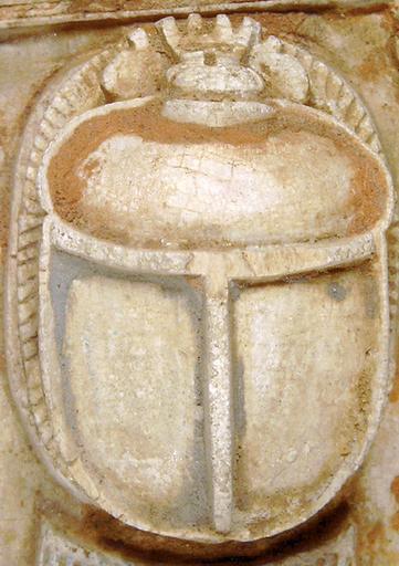 | Keywords: Egyptian - Pectoral with Scarab - Walters 4291 - Front View A.jpg The ancient Egyptians believed that the dung beetle the Scarabaeus sacer was one of the manifestations of the sun god Representations of these beetles were used as amulets and for ritual or administrative purposes The rectangular shrine shaped pectoral has a large scarab in the center The front displays an adoration scene scarab and baboons in a sun barque The shrine has a cavetto cornice at the top with an incised winged sun disk painted red and a base with lotus flower frieze in red and blue The central scene is additionally framed on the top and side by a color key whose colors are mostly gone The motif displays a scarab in a barque flanked by two baboons in adoration gesture; the mantle of the baboons shows a crossed hatched pattern All three figures have an extra base the one of the scarab decorated with a reed pattern Below the barque is a section with a herringbone pattern representing water In the right and left corner are short text columns with the name Wsjr Osiris The space around the figures was filled with red below the barque with blue color paste The motif is antithetically arranged that the baboons are facing the scarab The scarab's head plates and clypeus front plate are carved; pronotum dorsal plate of the prothorax elytron wing cases and the division between the wing cases are marked by raised borders to confine the color filling pronotum red wing cases blue The extremities are carved and have hatch notches on the upper sides for the tibial teeth and the pilosity hair The reverse of the shrine shaped pectoral displays an adoration scene with Osiris and private worshipper The flat shrine is framed by a cavetto cornice and color key borders with four-line dividers The central scene displays the god Osiris on the left crowned with double-feathers ram horns and cobra serpents He holds crock and flail in his hands and is seated on a block throne with a cushion overlapping the back His name is written in front of his crown The figure on the right side represents the female owner of the pectoral; she wears a long pleated dress a long wig that does not cover the ears and has a lotus flower on her head; she raises her arms in an adoration gesture Above her hands is an inscription containing the name of Osiris Between both figures is an empty oval frame which represents the juvenile sun resting on an dd-pillar with two arms embracing the sun The dominating icon of the scene is the big oval in the center and the two figures to the right and left look slightly built in comparison to it The figure of Osiris fills the whole height of the space including his base and crown indicating an equal importance to the scarab The front and back are executed in raised and sunk relief; the front has also colored past filling The scarab on the front is dominant by its size central position and raised round sculpted forms; the two flanking baboons are also prominent by their size and the very high raised relief; all the other details of shrine shaped pectoral are executed in high relief except the incised wings of the sun disc in the cavetto cornice; the layout is well organized but the scarab and its base in the barque are lopsided; noteworthy are the rectangular raised sections in the upper corners of the image field with the name of Osiris Only the blue and red color has been preserved and it is important to realize that only the scarab has a three-color spectrum red blue and white or yellow/gold The reverse side is more flatly executed the figures are carved in high relief; there are as on the other side two raised rectangular text fields for the incised inscriptions The figures are slender and slightly rough; the garments are detailed with very fine hatch line or dot pattern; the layout is balanced but the figure of Osiris seems slim in comparison to the worshiping lady due to his large crown and high throne base; moreover the central oval frame which originally held a scarab is lopsided The scarab-pectoral is a funerary amulet which was originally attached to mummy wrappings The amulet should assure the renewal of the deceased in the afterlife similar to that of the god Osiris which is why the inscription which names the seated god is the same as the inscription which identifies the worshipping deceased The combination of sun-oval and dd-pillar of Osiris represents the unification of both deities and of the cyclical and the linear aspects of time and eternity; the result is the renewal of both deities of this and the other world as well as the deceased While the reverse of the pectoral focuses on the unification process the front represents the renewal scarab with baboons in the barque and rising of the sun winged sun disc The amulet should guarantee the meeting of the deceased with the sun god and his consequential renewal It is striking that on both sides the scarab is lopsided; it seems to be unlikely that this was just a mistake of a less qualified artist Most probably the lopsided placement has to do with the idea of the sloping celestial path which can be expressed by a lopsided sky hieroglyph The motif of the scarab in the barque flanked by solar baboons is rare on private pectorals of the New Kingdom and more popular on scarabs Walters 42 396 or finger rings see between 1292 1070 BC New Kingdom steatite with color inlays cm 12 5 10 2 9 5 accession number 42 91 14857 Dikran Kelekian New York and Paris date and mode of acquisition unknown Henry Walters city Baltimore Walters Art Museum Henry Walters Acquired by Henry Walters 1929 Translation Osiris Jewelry - Ancient to Modern The Walters Art Gallery Baltimore 1979-1980 Objects of Adornment Five Thousand Years of Jewelry from the Walters Art Gallery Baltimore Cooper-Hewitt National Design Museum New York; Chrysler Museum of Art Norfolk; Carnegie Museum of Art Pittsburgh; San Antonio Museum of Art San Antonio; Philbrook Museum of Art Tulsa; Honolulu Academy of