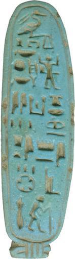 Keywords: Egyptian - Ring with Cartouche-Shaped Bezel - Walters 42417 - Top.jpg This example of turquoise-colored faience is chipped and has incrustations in the deeply cut crisp hieroglyphs which read May your house flourish may your lifetime be jubilant under the gifts of Amun of Karnak and a high old age between 1070 940 BC Third Intermediate faience with blue glaze Cartouche Bezel L 2 5/16 x W 2 7/16 x D 1/2 in 5 93 x 6 23 x 1 28 cm ; Inner Diam cm 1 23 accession number 42 417 10184 Dikran Kelekian New York and Paris date and mode of acquisition unknown obtained in Luxor Henry Walters city Baltimore Walters Art Museum Henry Walters Acquired by Henry Walters 1913 Jewelry - Ancient to Modern The Walters Art Gallery Baltimore 1979-1980 Faience The Colors of the Heavens The Walters Art Museum Baltimore; The Walters Art Museum Baltimore 2003-2004 Secret Signs Egyptian Writing The Walters Art Museum Baltimore 2003-2004 place of origin Egypt Walters Art Museum license Ancient Egyptian finger rings in the Walters Art Museum Ring with Cartouche-Shaped Bezel |
