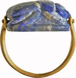 Keywords: Egyptian - Scarab Ring Bezel - Walters 42151 - Right.jpg This lapis lazuli scarab has a hawk-head figure wearing a ram's-horn crown carved into the back In his left hand is a staff from which a lotus blossom dangles century 4 BC Late Period-early Greco-Roman lapis lazuli modern gold mount cm 1 1 1 7 2 1 ; Max outer Diam cm 2 4 ; Max inner Diam cm 2 15 accession number 42 151 35459 H Hoffmann Collection until 1899 mode of acquisition unknown Charles Newton-Robinson London date and mode of acquisition unknown Charles Newton-Robinson Sale Christie Manson and Woods London June 22 1909 lot 1 Dikran Kelekian Paris and New York 1909 by purchase Henry Walters city Baltimore Walters Art Museum Henry Walters Acquired by Henry Walters 1909 Jewelry - Ancient to Modern The Walters Art Gallery Baltimore 1979-1980 place of origin Egypt Walters Art Museum license Ancient Egyptian scarabs in the Walters Art Museum Ancient Egyptian finger rings in the Walters Art Museum |