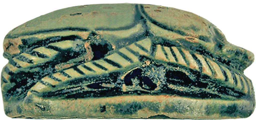 Keywords: Egyptian - Scarab with Bird and Papyrus - Walters 4274 - Right.jpg The ancient Egyptians believed that the dung beetle the Scarabaeus sacer was one of the manifestations of the sun god Representations of these beetles were used as amulets and for ritual or administrative purposes This scarab has a flat bottom with a special design that combines of images and hieroglyphs The layout of the deeply incised design is unusually organized the hieroglyphs face in different directions and some collides with the borderline The dominant icons are a hawk with his outstretched wings and a left rotated pool with the flowers An oval line frames the arrangement It may be possible to interpret the sign combination as cryptographic writing of the royal name Amenhotep The highest point of the back of the scarab is the double partition line between pronotum dorsal plate of the protorax and elytron wing cases Both parts have incised borderlines and a double division line separates the wing cases; the line flow is slightly irregular The semi-oval head is flanked by triangular eyes; the triangular side plates have outer borderlines and the clypeus front plate is marked The head section is very short and the head itself small in comparison to the clypeus The extremities have natural form and diagonal hatch lines for tibial teeth and pilosity hair The oval base is asymmetrical shaped having slightly smaller head part The scarab is longitudinally pierced was originally mounted or threaded and used as an amulet The design should secure the close relation of this king to Amun and provide a private owner with royal patronage of the current king The are several arguments for dating the scarab in the reign of Amenhotep I and not in a later period The figure of the hawk with wide outstretched wings which is popular during the early Thutmoside Period the round-oval shape of the base as well as the clear and simple back design between 1525 1504 BC New Kingdom beige steatite with blue-green glaze cm 0 8 1 3 1 7 accession number 42 74 40707 Henry Walters Baltimore date and mode of acquisition unknown Walters Art Museum Henry Walters Acquired by Henry Walters Translation Amen-hetep place of origin Egypt Walters Art Museum license Ancient Egyptian scarabs in the Walters Art Museum Media contributed by the Walters Art Museum needs category review |