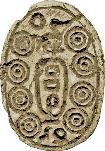 | Keywords: Egyptian - Scarab with the Cartouche of Sheshi - Walters 4226 - Bottom (2).jpg The ancient Egyptians believed that the dung beetle the Scarabaeus sacer was one of the manifestations of the sun god Representations of these beetles were used as amulets and for ritual or administrative purposes This scarab has a bottom inscription which contains the name and title of the King Sheshi as well as a formula wishing him life The inscription is deeply carved with thick lines and the shape of the hieroglyphs is somewhat clumsy The layout is irregularly organized and the top and bottom signs collide with the borderline The incised circle-design that frames the inscription is exact and symmetrically arranged which contrasts with the more sloppy forms and arrangement of the hieroglyphs; additionally the last two signs in the lower round are very compressed and collide with the borderline It is possible to explain the discrepancy between the exactly executed circle pattern and the inscription either with two different hands - of a scribe and of a pattern cutter - or and more likely for such a small object with the use of a kind of compass or stencil for the execution of the pattern The highest point of the scarab's back is at the partition between pronotum dorsal plate of the protorax and elytron wing cases The small semicircular head is framed by borderlines and the side plates are trapezoidal The clypeus front plate has four frontal serrations and a central base notch Two side-notches at shoulder height which are short and not aligned define the partition between pronotum and elytron The raised slender extremities are naturally formed and show deeply incised slightly irregular hatch lines for tibial teeth and pilosity hair The background between the legs is hollowed out and the central triangle shifted slightly to the front The base is symmetrically oval and the drill-holes are framed The scarab is longitudinally pierced was originally mounted or threaded and used as an amulet Such an amulet should on one side secure the existence and divine monarchy for this king and on the other provide its private owner with his royal patronage The identification of Sheshi with one of the Hyksos rulers or their vassals is likely but not secure The meaning of the circles' arrangement is difficult to determine; nevertheless given its similarity to the hieroglyphic sign of the sun disk it may assure renewal between 1648 1539 BC Second Intermediate Period beige steatite cm 0 9 1 4 2 accession number 42 26 9619 Henry Walters Baltimore 1911 mode of acquisition unknown Walters Art Museum Henry Walters Acquired by Henry Walters 1911 Translation Birth name of King Sheshi in a cartouche combined with solar filiations title and a wish formula Son of Re Sheshi who may live forever place of origin Egypt <gallery> File Egyptian - Scarab with the Cartouche of Sheshi - Walters 4226 - Bottom jpg </gallery> Walters Art Museum license Ancient Egyptian scarabs in the Walters Art Museum Sheshi Works of the 15th dynasty of Egypt Hyksos scarabs Hieroglyphs on scarabs Sa-Ra hieroglyphs Pool sh hieroglyph Scarabs with Wish Formula |