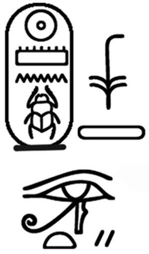 | Keywords: Egyptian - Scarab with the Cartouche of Thutmosis III (1479-1425 BC) - Walters 4220 - Impression Detail.jpg This steatite scarab is inscribed with the throne name of Thutmosis III 1479-1425 BC in sunk relief technique on the flat underside The top of the scarab is high and has a simple carved design The workmanship is slightly rough and some of the details are out of shape The piece functioned as an individualized amulet and was originally mounted or threaded The amulet should ensure royal protection and support its owner and make him as successful in warding against dangers as the king The scarab was produced after the death of Thutmosis III who was most probably understood as a protective god and successful model of divine kingship The combination of different royal manifestations with protective renewal and good luck elements intends to assure the all-inclusive magic power of the amulet The body and posture of the animal figure in the lower round of the scarab is similar to a donkey but the long horns which are too long to be ears make it more likely that it represents the royal bull Images of bulls on scarabs are mostly part of a motif showing the animal trampling on an enemy between 1292 1069 BC New Kingdom light beige steatite with blue-green glaze cm 1 2 1 9 2 7 accession number 42 20 26540 Henry Walters Baltimore 1911 mode of acquisition unknown Walters Art Museum Henry Walters Acquired by Henry Walters 1911 Translation Throne name of King Thutmose III in a cartouche combined with state ruler title King of the Two Lands Men-kheper-Re place of origin Egypt Walters Art Museum license 2D Ancient Egyptian scarabs in the Walters Art Museum Hieroglyphs on scarabs Cartouches of Thutmosis III Scarabs of Thutmosis III Eye of Horus hieroglyph |