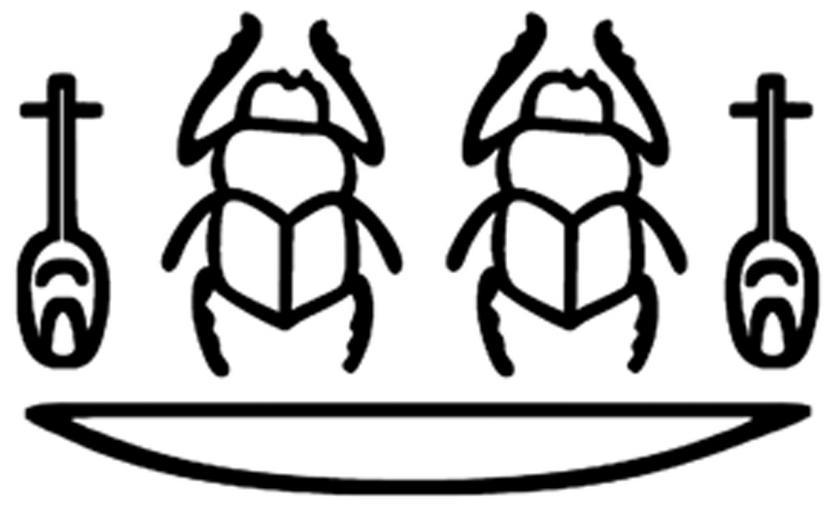| Keywords: Egyptian - Scarab with Perfect Existence Signs - Walters 4237 - Impression Detail.jpg This steatite scarab has a flat underside with a horizontally arranged design with three script signs two repeated The design of the back is simple with slightly unbalanced proportions The workmanship of the piece is good and it is simply made This amulet has a recreative and /or good luck connotation; the duplication of the signs should strengthen the effect The third sign is either a fill character or refers to the all-inclusiveness of 'perfect existence ' The scarab originally would have been mounted or threaded The combination of signs on the bottom of this scarab is not common ca 1648 1539 BC Second Intermediate; Hyksos; late MB IIB beige-brown steatite with green-blue glaze cm 1 1 5 2 1 accession number 42 37 36102 Henry Walters Baltimore date and mode of acquisition unknown Walters Art Museum Henry Walters Acquired by Henry Walters Translation Sign combination two scrabs above an nb-basket flanked by nfr-signs Perfect existence perfect existence place of origin Egypt Walters Art Museum license 2D Ancient Egyptian scarabs in the Walters Art Museum Hieroglyphs on scarabs Scarab hieroglyph Hyksos scarabs |
