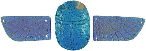 Keywords: Egyptian - Scarab with Spread Wings - Walters 421430 - Back.jpg Scarabs were modeled on the dung beetle Scarabaeus sacer The Egyptians associated these insects with the young sun-god Kheper who like the scarab was believed to be self created Images of winged scarabs were placed on the chest of the mummy to facilitate its rebirth in the afterworld between 756 655 BC Third Intermediate Egyptian faience light beige; glaze blue cm 1 4 3 7 5 3 accession number 42 1430 23913 Mr and Mrs Hugo Weisgall date and mode of acquisition unknown Walters Art Museum Gift of Mr and Mrs Hugo Weisgall 1948 In Search of Ancient Treasure 40 Years of Collecting The Walters Art Gallery Baltimore 1978 Faience The Colors of the Heavens The Walters Art Museum Baltimore; The Walters Art Museum Baltimore 2003-2004 place of origin Egypt Walters Art Museum license Ancient Egyptian scarabs in the Walters Art Museum Ancient Egyptian pectorals in the Walters Art Museum Media contributed by the Walters Art Museum needs category review |