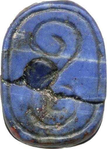 | Keywords: Egyptian - Scarab with Sprial Scroll Pattern - Walters 42390 - Bottom.jpg This lapis lazuli scarab has a flat underside with a vertically arranged design of spiral scrolls The scrolls are arranged below each other and both face with their open parts to the left The design of the back of the scarab is detailed with fine incised lines regular line flow and almost balanced proportions The workmanship of the scarab is slightly rough and the piece is simply made The scarab functioned as an amulet with a regenerative connotation and was originally mounted or threaded The bottom design was executed after the repair of the scarab The height of the scarab makes it likely that it was originally created as inlay for a finger ring Later the scarab was reused and the second latitudinal hole was drilled between 1550 1450 BC New Kingdom blue lapis lazuli cm 0 8 1 1 4 accession number 42 390 25816 Henry Walters Baltimore date and mode of acquisition unknown Walters Art Museum Henry Walters Acquired by Henry Walters Daily Magic in Ancient Egypt The Walters Art Museum Baltimore 2006-2007 place of origin Egypt Walters Art Museum license Ancient Egyptian scarabs in the Walters Art Museum Media contributed by the Walters Art Museum needs category review |