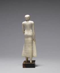Keywords: Egyptian - Standing Figure of a Male Dignitary - Walters 71509 - Back.jpg Sadly this small figure of a standing official has lost its original base which would have provided information on his identity but the outstanding quality of its workmanship and the material used indicate that it was made for an individual of very high status This sophisticated small figure displays several features typical of Middle Kingdom sculpture prominent eyes; the significant gesture of his left hand placed upon his right breast indicating an attitude of respect; elongated arms and hands; and the ankle-length shendyt The slight fleshiness of the body hint at the owner's desire to be seen as successful and therefore well fed ca 1970 BC Middle Kingdom carved elephant ivory cm 21 2 6 8 5 3 accession number 71 509 19866 Maurice Nahman Cairo and Paris date and mode of acquisition unknown Henry Walters city Baltimore Walters Art Museum Henry Walters Acquired by Henry Walters 1930 place of origin Asyut Egypt Walters Art Museum license Ancient Egyptian statues in the Walters Art Museum Media contributed by the Walters Art Museum needs category review Ancient Egyptian art from Asyut |