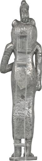 | Keywords: Egyptian - Standing Wadjet - Walters 571421 - Back.jpg The ancient Egyptians donated figures of their gods for use in temple rituals; smaller images served as amulets to ensure divine protection Goddesses in particular were viewed as protective deities From earliest times Egyptians venerated a wide circle of feline-headed female deities such as Sekhmet Tefnut Wadjet and Bastet This small silver figure represents Wadjet She is standing wearing a long female garment amulets and bracelets At the top of her head is a large erected uraeus cobra serpent The goddess holds a ritual instrument in front of her body with her left hand; it is a usekh-collar with a lioness-head also called an Aegis which has a protective function between 1070 730 BC Third Intermediate silver cm 9 26 2 66 2 15 accession number 57 1421 34004 Henry Walters Baltimore date and mode of acquisition unknown Walters Art Museum Henry Walters Acquired by Henry Walters Jewelry - Ancient to Modern The Walters Art Gallery Baltimore 1979-1980 Daily Magic in Ancient Egypt The Walters Art Museum Baltimore 2006-2007 place of origin Egypt Walters Art Museum license Ancient Egyptian amulets in the Walters Art Museum Wadjet Media contributed by the Walters Art Museum needs category review |