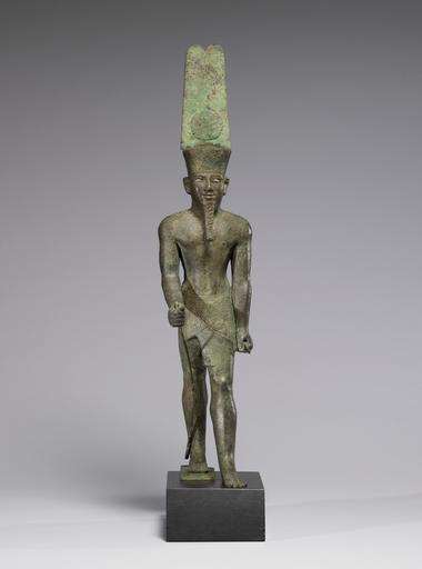 | Keywords: Egyptian - Statue of Amun-Re - Walters 54413.jpg Amun was one of the most important deities in ancient Egypt He was worshiped at Thebes in southern Egypt from the beginning of the Middle Kingdom 2046 BC The Egyptians considered him to be King of the Gods and divine father of the pharaoh He was also worshiped in Nubia and was the principal god of the Kushite empire in present-day Sudan The style of the figure clarifies that it was made when the Kushites ruled both Egypt and Nubia The god wears his characteristic feather-crown combined with the solar disk of the sun-god Re The attributes he would originally have held were probably the symbols for prosperity was and life ankh ca 680 640 BC Late Period bronze alloy remains of gilding and glass inlay cm 47 6 10 2 13 7 accession number 54 413 32904 Dikran Kelekian New York and Paris Henry Walters city Baltimore Walters Art Museum Henry Walters Acquired by Henry Walters 1911 place of origin Karnak Egypt Walters Art Museum license Ancient Egyptian statues in the Walters Art Museum Statues of the Egyptian late period Statues of Amun-Ra |