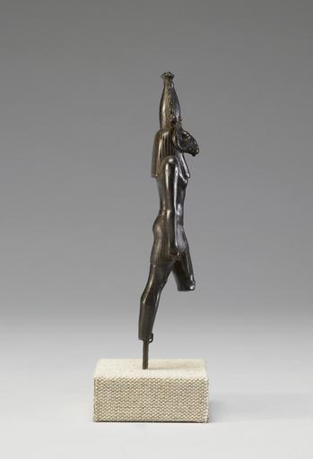 | Keywords: Egyptian - Statuette of a Ram-Headed Deity - Walters 54555 - Right.jpg The figure represents a male god with a human-shaped body ram-shaped head and wearing the atef crown a combination of ram-horns plumes the upper Egyptian crown cobra serpents and sun-disk The figure likely represents the god Khnum ca 900 700 BC Third Intermediate bronze with gold inlay cm 13 8 3 2 2 8 accession number 54 555 22795 F G Hilton Price Sir Thomas Carmichael Henry Walters Baltimore 1928 mode of acquisition unknown Walters Art Museum Henry Walters Acquired by Henry Walters 1928 place of origin Egypt Walters Art Museum license Ancient Egyptian statuettes in the Walters Art Museum Media contributed by the Walters Art Museum needs category review |