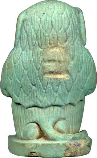 | Keywords: Egyptian - Thoth-Baboon - Walters 481543 - Back.jpg  The patron of scribes and deity of wisdom Thoth was associated with the sun and the moon traditionally the two eyes of the celestial-god Horus The baboon identified with Thoth here holds a sacred Wedjat-eye the so-called Eye of Horus which symbolizes legitimate kingship the structured universe and life This carefully formed baboon holds the eye in front of his chest with his left hand below and the right above between 664 332 BC Late Period Egyptian faience with light green glaze cm 3 93 2 45 2 53 accession number 48 1543 5829 Henry Walters Baltimore date and mode of acquisition unknown Walters Art Museum Henry Walters Acquired by Henry Walters place of origin Egypt Walters Art Museum license Ancient Egyptian statuettes in the Walters Art Museum Ancient Egyptian faience in the Walters Art Museum Statues of Thoth baboon Thoth amulets |