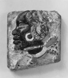 Keywords: Egyptian - Tile - Captive Nubian Chieftain - Walters 48409.jpg This man has the large earring and tightly curled hairstyle typical of Egyptian depictions of Nubians When complete the tile showed the chieftain as a bound prisoner Such prisoner tiles could have decorated the bases of walls of royal buildings so the enemies of the pharaoh would be quite literally at his feet ca 1300 1150 BC New Kingdom faience with polychrome glaze cm 7 8 7 2 4 accession number 48 409 18115 Dikran Kelekian Paris and New York Henry Walters city Baltimore Walters Art Museum Henry Walters Acquired by Henry Walters 1929 place of origin Medinet Habu present-day Luxor Egypt Walters Art Museum license Ancient Egyptian reliefs in the Walters Art Museum Media contributed by the Walters Art Museum needs category review POWs in Ancient Egypt |
