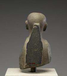 Keywords: Egyptian - Unfinished Statue of a Man - Walters 22396 - Back.jpg The top of a wrap-around garment is seen on this unfinished work It may have been intended as a royal statue then altered for a private owner which would explain the chiseled area on the forehead where the uraeus serpent a symbol of royalty may have been ca 525 340 BC Late Period granodiorite cm 21 5 11 6 12 1 ; mount cm 13 5 12 2 13 accession number 22 396 4620 Dikran Kelekian New York and Paris Henry Walters city Baltimore Walters Art Museum Henry Walters Acquired by Henry Walters 1911 place of origin Paris France Walters Art Museum license Ancient Egyptian statues in the Walters Art Museum Media contributed by the Walters Art Museum needs category review |