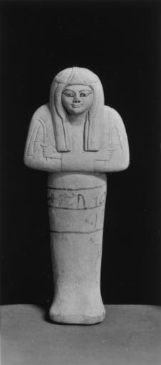 Keywords: Egyptian - Ushabti - Walters 22318.jpg This figure is carved mummiform She wears a female wig and has painted eyes Her arms are crossed; there is a hoe in the right hand a cord to a sack behind her left shoulder and a mattock in her left hand There is an inscription painted on the front between 1550 1069 BC New Kingdom limestone black paint cm 21 5 accession number 22 318 30029 Henry Walters Baltimore 1922 mode of acquisition unknown Walters Art Museum Henry Walters Acquired by Henry Walters 1922 place of origin Egypt Walters Art Museum license Ushabti in the Walters Art Museum Ushabti of the Egyptian New Kingdom