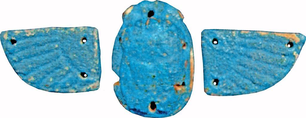 | Keywords: Egyptian - Winged Naturalistic Scarab - Walters 421448 - Back.jpg This faience winged scarab has a flat underside without a bottom design or drill-holes The design on the scarab's back is very simple It has a rough and uneven surface balanced proportions no evidence of extremities or partition lines and rough workmanship The piece is poorly made The scarab functioned as a funerary amulet and would have been attached to mummy bandages Winged scarabs should assure the renewal of the deceased by meeting the sun god in the afterlife Winged scarabs were the central part of the amulet set of a mummy century 6 4 BC Late Period-early Greco-Roman light beige faience with blue glaze Scarab cm 1 18 3 1 4 3 ; Wing cm 1 1 2 8 4 accession number 42 1448 37269 William Shirley date and mode of acquisition unknown Walters Art Museum Gift of William Shirley 1963 place of origin Egypt Walters Art Museum license Ancient Egyptian scarabs in the Walters Art Museum Ancient Egyptian pectorals in the Walters Art Museum Media contributed by the Walters Art Museum needs category review |