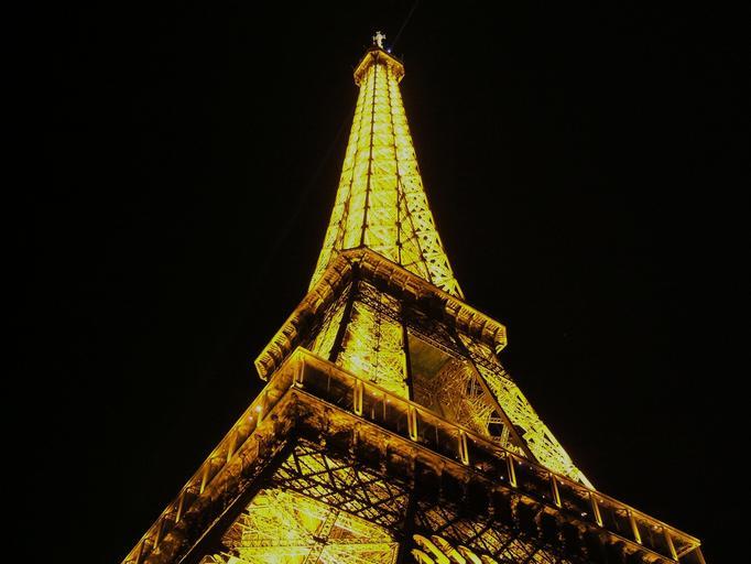 Keywords: eiffel tower paris france landmark destination architecture historical famous night evening lights glow