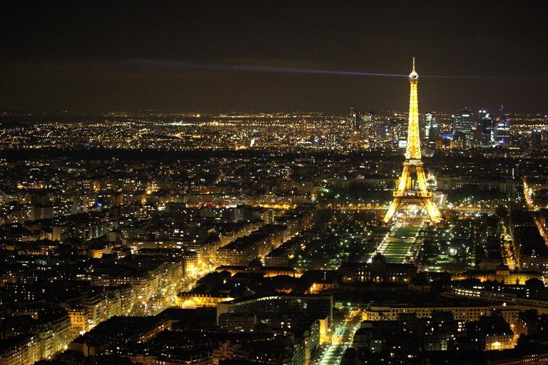 Keywords: eiffel tower paris monument night symbol structure cityscape landmark light beacon illuminated architecture city famous iron tall metal tourist attraction park romance france europe