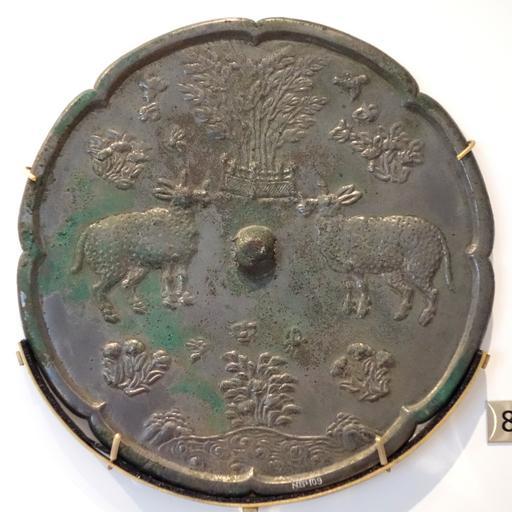 Keywords: Eight-lobed mirror, China, Tang dynasty, 618-907, bronze - Royal Ontario Museum - DSC04178.JPG en Exhibit in the Royal Ontario Museum Toronto Ontario Canada This work is old enough so that it is in the public domain Photography was permitted in the museum without restriction 2013-10-08 14 55 01 own Daderot cc-zero Bronze mirrors of China in the Royal Ontario Museum Uploaded with UploadWizard Bronze mirrors of the Tang Dynasty |