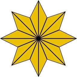 | Keywords: Eight-pointed star 16 radial lines.svg Gold eight-pointed star with 16 rib lines drawn from the center to the vertices Vector equivalent to File Simon dEscorsi seal tif generated from the following vector PostScript source code <pre> 300 396 translate 2 setlinewidth/A 7442 sqrt def/B 72 22 5 cos mul def/C 72 22 5 sin mul def/D lineto def/E dup neg 3 2 roll dup neg exch 4 1 roll exch moveto D stroke def 0 122 moveto C B D A A D B C D 122 0 D B C neg D A A neg D C B neg D 0 -122 D C neg B neg D A neg A neg D B neg C neg D -122 0 D B neg C D A neg A D C neg B D closepath gsave stroke grestore 1 9 0 setrgbcolor fill 0 setgray 0 122 E 122 0 E A A E A neg A E 2 setlinecap B C E C B E B neg C E C neg B E showpage EOF</pre> HandSVG Eight rays Images with PostScript source code |