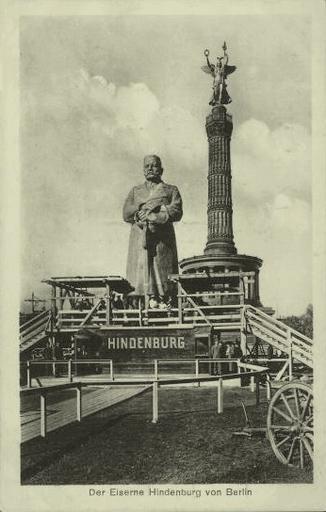 Keywords: Eisernehindenburg.jpg en français Statue géante de bois d'aulne érigée à la gloire d'Hindenburg Le public était invité à venir y planter des clous à acheter sur place la somme étant versée aux veuves de guerre A cette époque la figure d'Hindenburg et/ou son nom ont été apposés sur de nombreux objets Der Eiserne Hindenburg Die Öffentlichkeit wurde eingeladen zu kommen und fahren Nägel vor Ort zu kaufen wobei die Summe in den Krieg Witwen bezahlt Zu dieser Zeit die Zahl von Hindenburg und / oder seinen Namen haben wurde auf vielen Einzelteilen platziert Giant statue of alder wood erected to the glory of Hindenburg The public was invited to come and drive nails to buy on the place the sum being paid to war widows At this time the figure of Hindenburg and / or his name have was placed on many items Reusachtige standbeeld van elzenhout opgericht om de glorie van Hindenburg Het publiek werd uitgenodigd om nagels te komen en rijden om te kopen op de plaats het bedrag wordt besteed aan oorlog weduwen Op dit moment is de figuur van Hindenburg en / of zijn naam werd op vele punten hebben geplaatst Гигантская п опагандистская статуя из ольхи воздвигнутая в честь Пауля фон Гинденбу га В ходе сбо а с едств на войну г ажданам п едлагалось п иоб ести и вбить гвоздь в де евянную скульпту у Gigantesca statua di legno di ontano eretto a gloria di Hindenburg Il pubblico è stato invitato a venire a piantare chiodi da acquistare sul posto la somma viene versata a vedove di guerra In questo momento la figura di Hindenburg e / o il suo nome sono stato messo su molti articoli Estatua gigante de madera de aliso erigido a la gloria de Hindenburg El público fue invitado a venir y clavos para comprar en el lugar la suma que se paga a las viudas de guerra En este momento la figura de Hindenburg y / o su nombre ha sido colocado en muchos artículos Carte postale 1917 Bergmann Hermann Hofbuchdruckerei Image Bundesarchiv Bild 146-1970-023-65 Berlin Eiserner Hindenburg Holzstandbild jpg PD-old Paul von Hindenburg 1917 1917 in Berlin Wehrmann in Eisen |