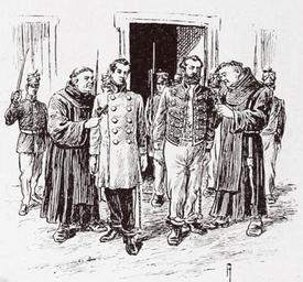 | Keywords: El adios de los Hermanos Carrera.jpg es Los Hermanos Luis Carrera y José Luis Carrera camino de ser fusilados en Mendoza Argentina 8 de abril de 1818 http //www memoriachilena cl/archivos2/pdfs/MC0049875 pdf LFR Corre Vuela 8 de abril de 1908 PD-old PD-Chile Hermanos Carrera |