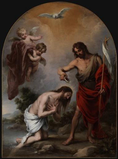 | Keywords: El Bautismo de Cristo (Capilla de San Antonio de la catedral de Sevilla).jpg  Esta obra que se halla colocada en el ático o remate del retablo de la capilla de San Antonio de la catedral de Sevilla España fue pintada hacia el año 1668 por el célebre pintor Bartolomé Esteban Murillo c 1668 Oil on canvas cm Catedral de Santa María de la Sede de Sevilla Capilla de San Antonio de la catedral de Sevilla accession number object history credit line cite book Luis Martinez Montiel and Alfredo J Morales La catedral de Sevilla 1999 Scala Publishers and Aldeasa S A 857592042 http //www revistadearte com/wp-content/uploads/2012/05/2 -El-Bautismo-de-Cristo-Murillo jpg PD-old-100 Retablo de la capilla de San Antonio Catedral de Sevilla Uploaded with UploadWizard |