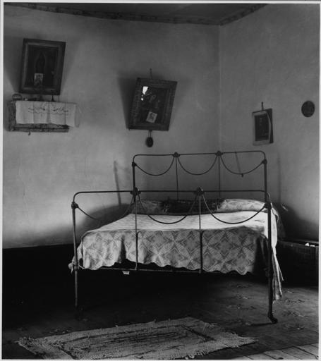 | Keywords: El Cerrito, San Miguel County, New Mexico. Rooms in all these houses differ considerably as to furn . . . - NARA - 521187.jpg Scope and content Full caption reads as follows El Cerrito San Miguel County New Mexico Rooms in all these houses differ considerably as to furniture arrangement and shape but almost all of them are surprisingly clean and well kept The influence of the church on the lives of these people is very strongly reflected in the decorating to be seen on the walls of their homes Notice that nearly every one of these pictures shows some sort of religious symbol Details of interiors The bedroom is typical with its iron bedsteads and heavy clother trunks Crowding is not a problem in El Cerrito where a number of houses stand vacant and certain members of almost every family are away trying to earn a little money as day laborers General notes 521187 Local identifier 83-G-37835 Department of Agriculture Bureau of Agricultural Economics Division of Economic Information ca 1922 - ca 1953 NARA-Author Rusinow Irving Photographer 5307166 <br /> Still Picture Records Section Special Media Archives Services Division NWCS-S National Archives at College Park 8601 Adelphi Road College Park MD 20740-6001 1941 04 10 - 1941 04 16 Record group Record Group 83 Records of the Bureau of Agricultural Economics 1876 - 1959 Record group ARC 412 Photographic Prints Documenting Programs and Activities of the Bureau of Agricultural Economics and Predecessor Agencies compiled ca 1922 - ca 1947 documenting the period ca 1911 - ca 1947 Series ARC 521048 File unit File unit ARC Variant control numbers NAIL Control Number NWDNS-83-G-37835 Other versions <gallery> File El_Cerrito _San_Miguel_County _New_Mexico _Rooms_in_all_these_houses_differ_considerably_as_to_furn_ _ _ _-_NARA_-_521187 tif tif File El_Cerrito _San_Miguel_County _New_Mexico _Rooms_in_all_these_houses_differ_considerably_as_to_furn_ _ _ _-_NARA_-_521187 jpg jpg </gallery> NARA-cooperation PD-USGov Metal beds A Beds in the United States A Bedrooms in the United States Cast iron furniture Beds El Cerrito New Mexico 1941 in New Mexico Irving Rusinow NARA images of New Mexico Black and white photographs of New Mexico |